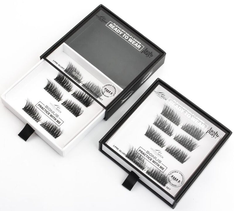 New to the 'READY-to-WEAR' Lash Play collection are our Pre-Gluedhalf lashes designed with our innovative ultra-flexible Stretch-FitLash Band that gently expands and hugs your lash line for a seamless, custom fit — no trimming, no glue, no stress.
